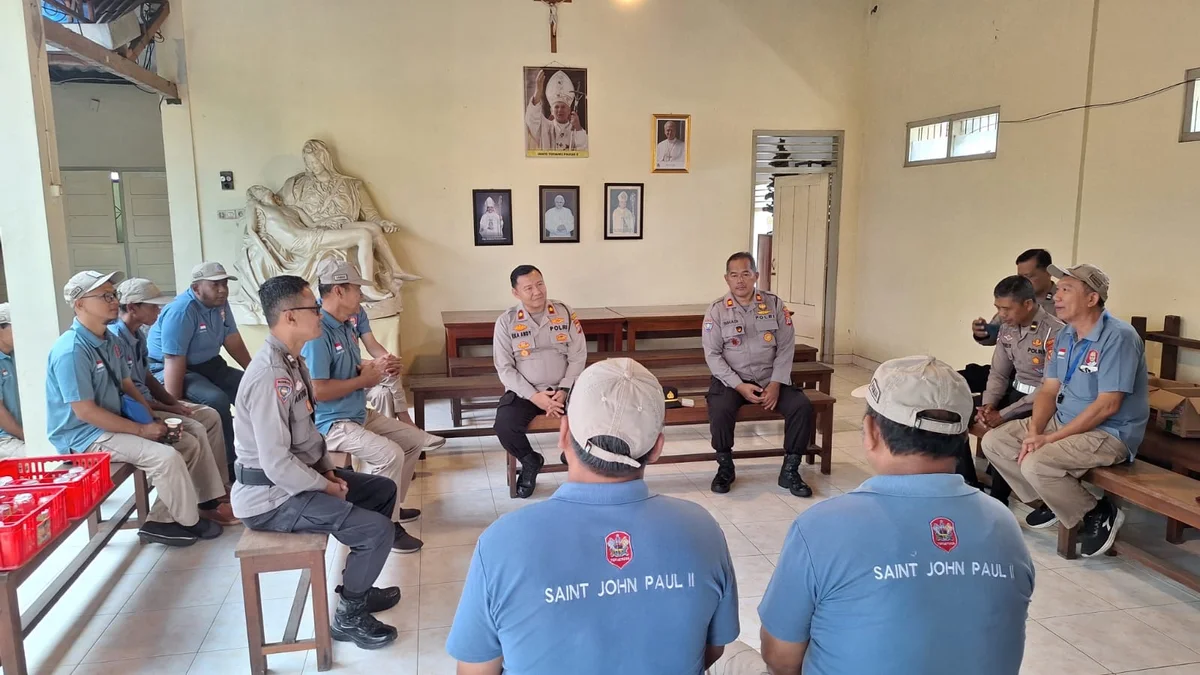 "Penyuluhan hukum yang diberikan oleh Kepala Kepolisian RI Sektor Sleman, Kompol Eka Andy Nursanto, S.H., M.H., yang bertempat di ruang pertemuan Gereja St. Venantius Ngelo." Sleman, 28 Februari 2026.